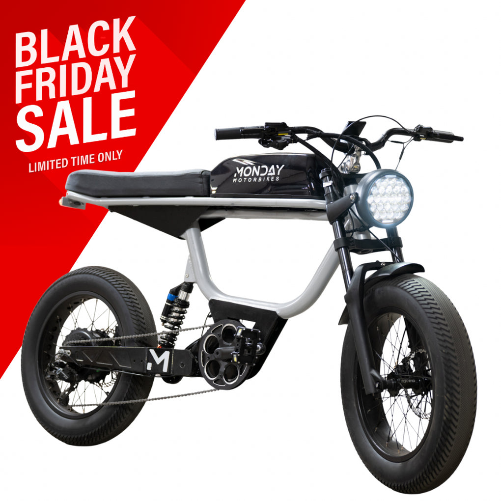 The Monday Motorbikes Anza V4 advances the classic design of café racer with an all new 2025 model. The Anza V4 adds a Front fork suspension and a rear mono shock with adjustable stiffness and rebound. Another improvement over the previous model is an eight speed derailleur to allow for more efficient peddling. Nearly eliminating ghost peddling even at higher speeds. Four piston hydraulic brakes offering superior stopping power. We also added a 60° tilt steering stem to adjust your riding position.